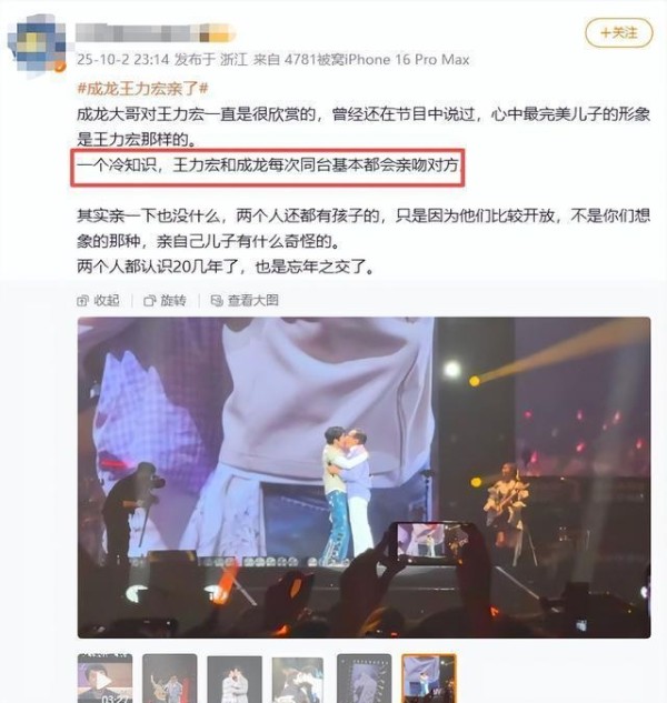 演唱会结束后,王力宏还发了个动态,明着表白成龙,说成龙是他“一辈子最好的朋友”。这话说得挺暖,粉丝也能感受到两人关系是真的铁。但亲嘴这事,很多人还是接受不了。