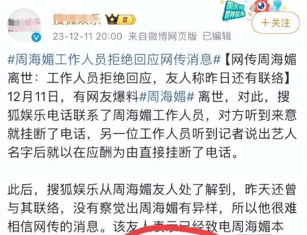 周海媚近日的生死波折让人们对她的关注度和关心之情达到了极高的程度。不少粉丝都表示,她是他们成长过程中的一个重要角色,所以对于她的病情和康复都非常关注。而对于她的疾病和医疗过程,媒体也纷纷进行了报道和揭秘。据报道,周海媚的病情与血小板较低有关,但具体情况尚未明确。