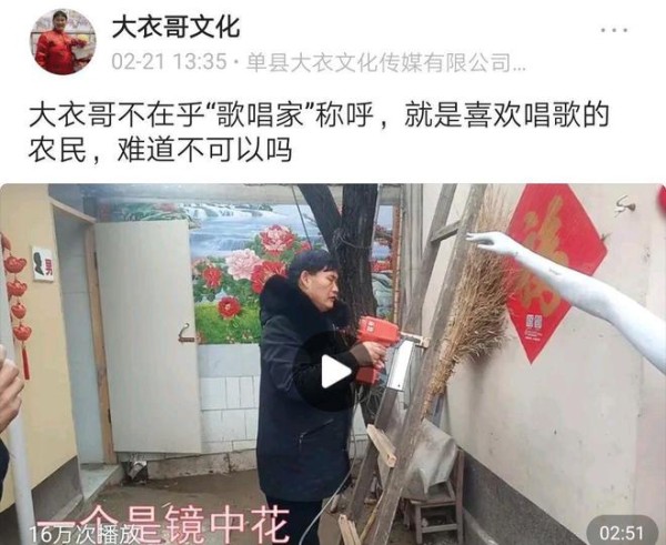 该官方账号表示,大衣哥不在乎“歌唱家”的称呼,就是喜欢唱歌的农民不行吗?这一句话算是从侧面回怼了一下蒋大为!