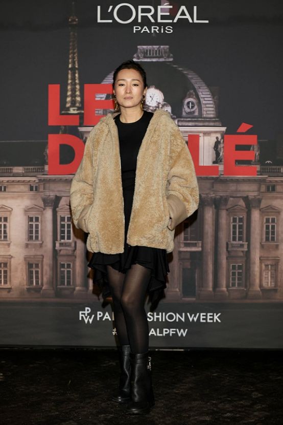 皮草的领口比较厚实会减少脸部与衣服的空间感,很容易显脸大脖子短,这时候我们还可以通过发型来改善这种情况的,一定要避免厚重的长发,选择一款利落轻盈的盘发,露出纤长的脖颈线条,给人一种空间留白感,视觉上显瘦又显利落。