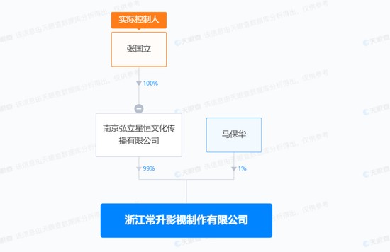 浙江常升影视制作有限公司成立于2013年5月,注册资本1000万人民币,经营范围含制作、复制、发行:专题、专栏、综艺、动画片、广播剧、电视剧,组织文化艺术交流活动,艺人经纪等,现由张国立全资持股的南京弘立星恒文化传播有限公司与马保华分别持股99%、1%。