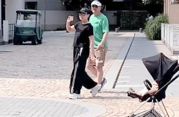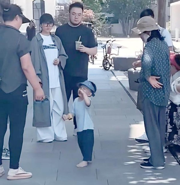 宋丹丹身着一套宽松的休闲装,戴着一顶遮阳帽,笑容可掬,显得亲切十足。她的儿子穿着运动装,阳光帅气的形象引人注目。而最吸引人的无疑是那位可爱的小孙子,他身着印有卡通图案的T恤,搭配一条短裤,显得活泼可爱。