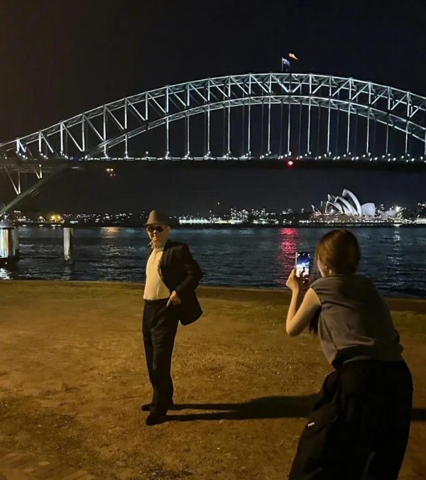 从爷爷的穿搭来看,墨镜、帽子、领带,样样俱全,看上去简直就像电视里的豪门爷爷,站在这样的人物旁边,自然会让人觉得豪气十足。