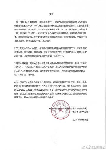 #王大陆否认小小的愿望压番# 王大陆工作室针对电影《小小的愿望》“演员番位事件”发布声明,明确王大陆与片方合约中签署的是“男一号”徐浩角色。所以片方在合约签署上为什么会出现如此明显的疏失呢?