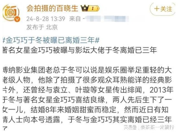 曝于冬金巧巧离婚,儿女抚养权疑归女方,诸多细节被扒出