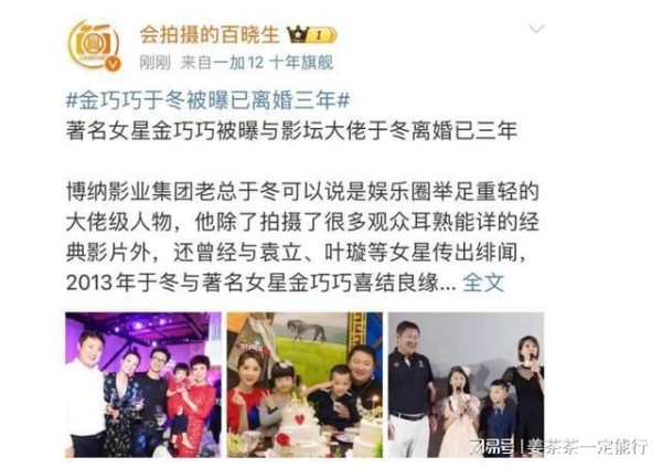 大瓜!博纳总裁于冬与金巧巧离婚内幕曝光,曾多次晒全家幸福照片