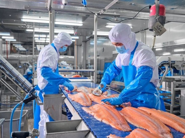 记者了解到,盒成食品深耕崇明十年来,已从行业新锐成长为食品加工领域的骨干力量。2016年,企业依托崇明横沙渔港的优质渔业资源起步,初期仅30名员工,专注三文鱼加工;如今员工规模超400人,建成先进全自动化三文鱼加工生产线,市场渠道遍布全国——既是山姆、盒马等连锁商超的核心供应商,也为沃歌斯、超级碗等连锁餐饮及多家高端酒店提供服务,让“崇明产”优质海鲜端上更多家庭餐桌。