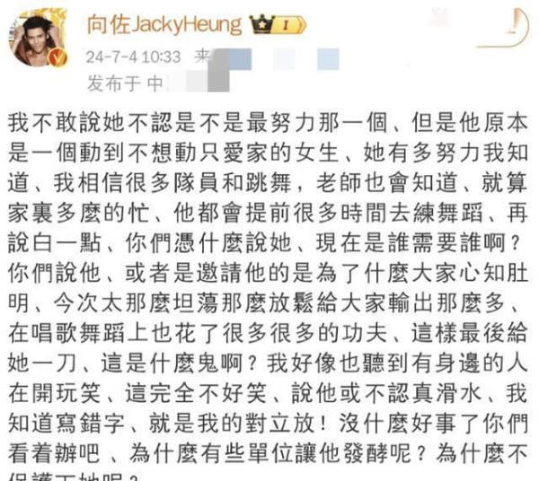 值得一提的是,向佐在捍卫妻子时的表现也引起了广泛关注。他毫不畏惧地站出来为郭碧婷说话,维护了妻子的形象。这不仅赢得了部分网友的好评,也体现了向佐对妻子的重视和爱护。