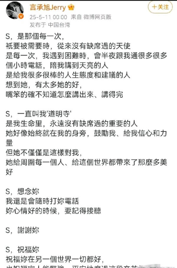 言承旭深夜发文,追忆与大S二十年挚友深情