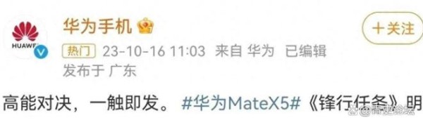 在华为手机官方微博发布的预热海报中,谢霆锋手持着最新的华为Mate X5,配文“够硬核、够风潮、够机智”,这一形象展示让人过目难忘。