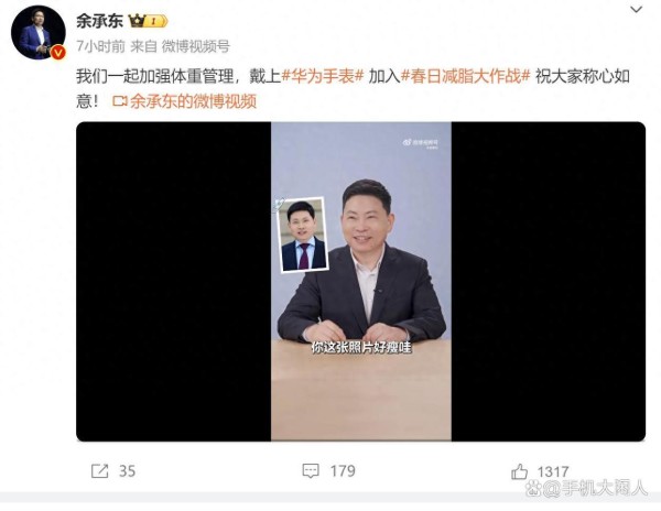 余承东最近有两条,甚至也不避讳,结合自己长胖了要减肥,然后推荐华为手表运动功能还有小艺的互动功能,反正非常敬业。