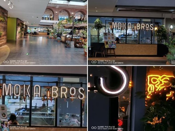 上图为手持华为P40 Pro在室内拍摄的不同焦段的室内样张,能看到:1倍变焦情况(与人眼焦段相近),远方「bar」距离我们非常的远;但用华为P40 Pro长焦拉近到5倍后,细节呈现更多,同时得益于光学防抖和RYYB阵列加持,5倍变焦情况下画质也非常锐利明亮。