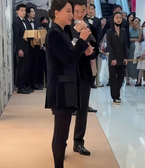 但是从正面看,上半身还是不错的,西装内搭低胸短裙,高贵典雅中又带着性感,唯一美中不足的就是下半身的鞋子了,和裙子一装扮,把殷桃都给显成“粗胖小短腿”了!