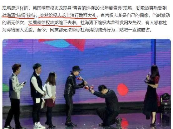 杜海涛一向被塑造成"憨厚大男孩"的形象,但其背后的"黑料"可一点也不少。最引人关注的莫过于2013年,他在颁奖典礼上主动下跪给韩国男星权志龙颁奖的丑闻。这一行为不仅引发了无数中国网友的不满,纷纷指责他"没有一点中国人的骨气",简直是在"争着伺候洋大人"。即便事后杜海涛发表了公开道歉,但很快又有网友发现他在社交平台上发布的一张"怪里怪气"的图片,似乎在暗讽质疑他的网友是"妖怪"。可见,这个看似"老实"的大男孩,内心其实并非如表面那般单纯。