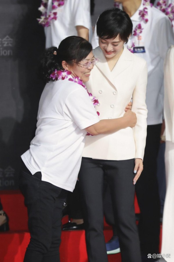 台上站着这么多的大咖,那位脖子上戴花的阿姨为什么只抱住孙俪不放?不抱抱马云和李连杰吗?