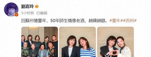 2025年10月31日,刘嘉玲在社交平台晒出回苏州与老师、同学的合影,配文“师生情如老酒”,结果却被大量网友质疑面部僵硬、医美痕迹明显,没拉开与同学的状态差距,甚至被吐槽气质像微商;