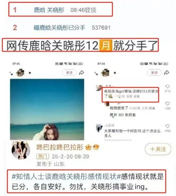 这次分手传闻,不同寻常。首先细节很到位,曝去年12月分手,关晓彤大粉留言“分手快乐。”