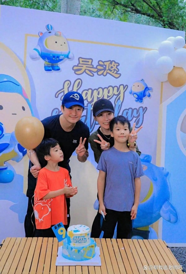 吴京一家为大儿子办生日宴!谢楠素颜精致貌美,俩娃如复制似妈妈吴京谢楠长子9岁了!吴所谓早产遇险,长大成小战狼,师父是于谦