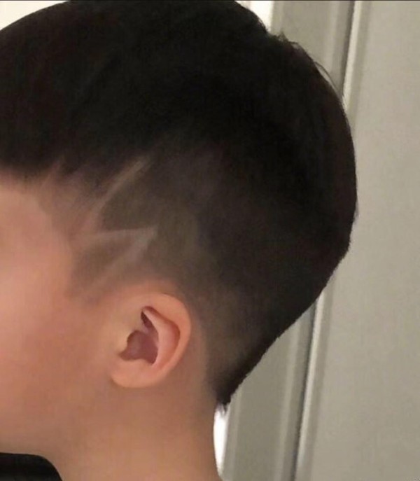其实,如果看过谢楠早些时候晒出的一张儿子背面照,就会觉得第二张头发上剃的闪电不算什么了。