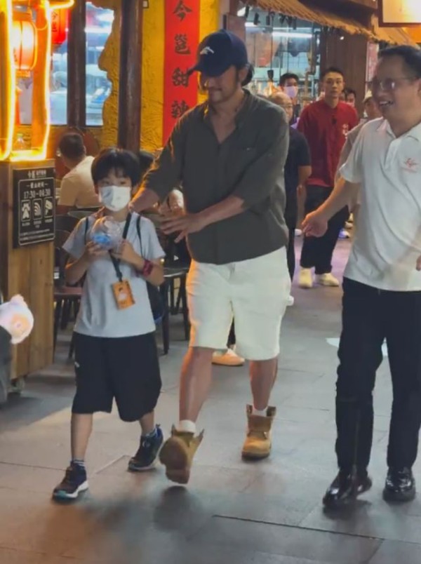 7月2日,吴京罕见的带着6岁小儿子吴虑现身广西南宁吃烧烤,被很网友在街头拍到。