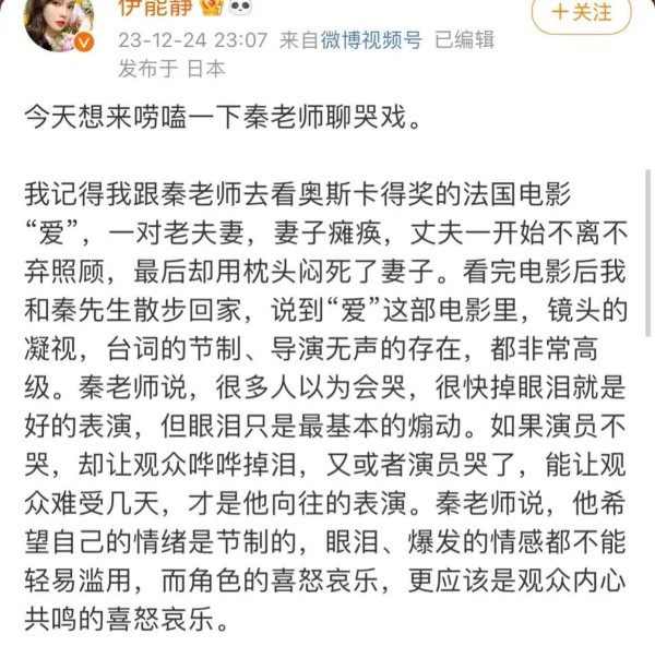 演员与公关通常被看作两个独立的领域,然而伊能静却将它们巧妙地融为一体。每当秦昊有新作品发布,伊能静总会以一篇精心构思的小作文在社交媒体上为其助威。相比其他明星简单直接的宣传方式,伊能静通过文字,如同与网友亲密交谈,用更为深刻的方式呈现秦昊的另一面。