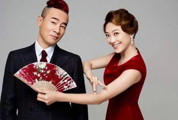 在海报中,应采儿身着旗袍,优雅地烫着包租婆的发型,她依偎在丈夫的肩膀上,夫妻二人一个显得高冷范儿十足,一个则透露出高雅气质。
