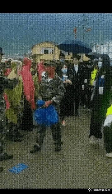 事件出现了,在视频中,一位身着迷彩服的好像是“抗洪战士”,正背对着吴亦凡的队伍,在吴亦凡路过时,他旁边的壮汉保镖一起手就将“抗洪战士”推到一边,动作粗鲁而无情。