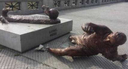 梅西作为阿根廷乃至全世界的头号球星,照理说在阿根廷应该被当作国宝宠着,但是事实上梅西并没有享受到这样的待遇。根据当地警方的消息,位于阿根廷首都布宜诺斯艾利斯的一座梅西雕像又一次遭到了破坏,雕像的双腿被人恶意砍断,雕像也被人推在了地上,场面一片狼藉。