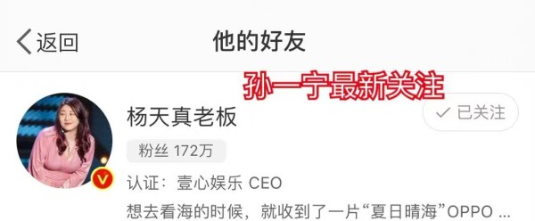 孙一宁发长文道歉想洗白,与明星经纪人杨天真互关,要出道了?