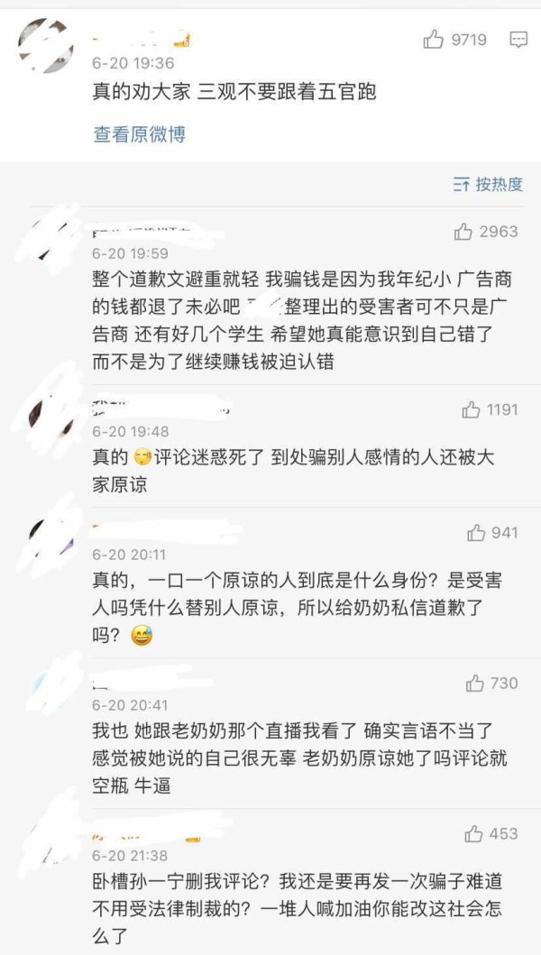人们更关注的是她在直播间侮辱嘲讽残疾老奶奶事件。即使孙一宁发布了道歉声明,并在老奶奶直播间刷了450块钱,但网友们似乎并不领情,认为她犯下的错误给奶奶心里带来的打击是无法弥补的。