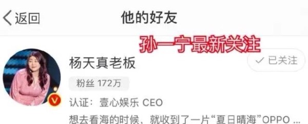 众所周知,前不久女网红孙一宁因敢于与王思聪正面刚的态度,一夜走红,事后网友发现杨天真关注了孙一宁,孙一宁也回关了杨天真,引发孙一宁被杨天真签约,要预备出道的猜疑!