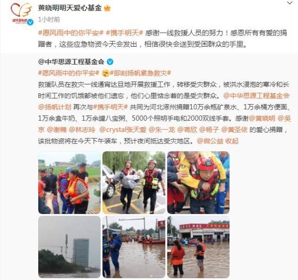 明星力量持续助力涿州抗洪救灾 行动引发社会广泛关注