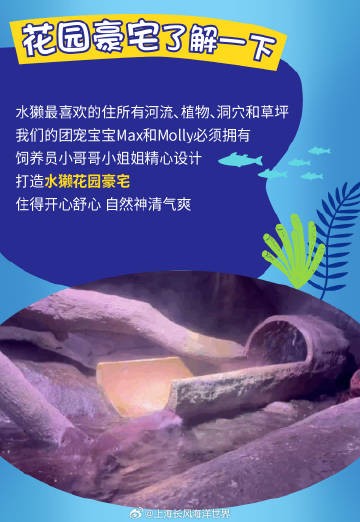#上海长风海洋世界# 的明星水獭夫妇已经在这里生活了十几年了,今天就来揭秘它们的长寿秘诀!水獭夫妇Max和Molly坐拥花园豪宅,享受原生态养生大法,每天都有着丰富有趣的活动和喜欢的美食。也少不了饲养员小哥哥小姐姐的陪伴和贴心照顾。想亲眼看看#水獭# 夫妇的神仙生活吗?来水族馆找它们玩吧~
