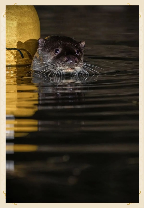 金塘水獭保护工作站的工作人员何既白,是那晚拍摄到水獭高清照片的摄影师。他回忆道,当时正在水塘边蹲点,试图寻找水獭的踪迹,却意外地遇见了一只正在水中觅食的水獭。于是,他毫不犹豫地捕捉下了这一珍贵的“萌态可掬”的瞬间。