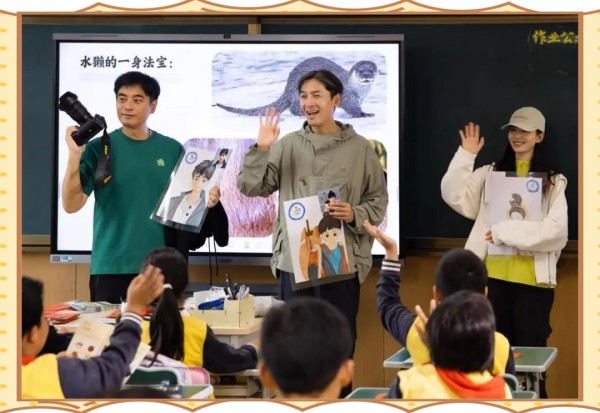 接着,胡歌、陈龙以及刘诗诗共同莅临沥港中心小学,为五年级的孩子们带来了一场别开生面的水獭创意宣讲。刘诗诗与原乡生态组织成员制作了精美的宣讲幻灯片,胡歌和陈龙展示了他们在金塘岛上拍摄的水獭影像。这场宣讲不仅激发了孩子们的热情,更在他们心中种下了保护水獭、珍爱自然的种子。