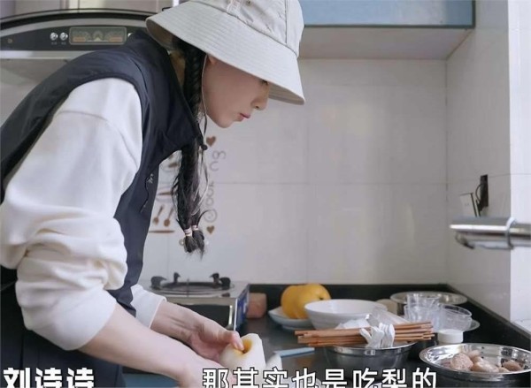 虽然刘诗诗是家中的独生女,但她非常勤劳。她会拿着地瓜叶去喂小动物,还会为大家榨梨汁喝。吃火锅时,刘诗诗更是完全不顾及女神形象,大口吃了起来。