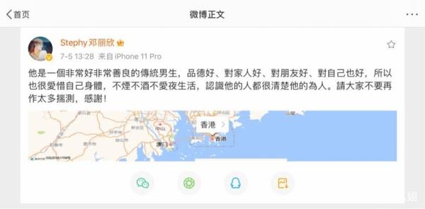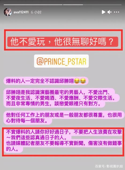 眼见这样类似的消息层出不穷,作为当事人的王子终于按捺不住,表示为自己叫屈,声称一切都是无稽之谈,希望谣言止于智者,就连其身边的异性好友也发文力撑,由此看来,他的人缘真的很好。没多久,还有眼尖的网友发现另一位当事人邓丽欣也专门发文为其澄清,想来也是为大众派了一颗定心丸。