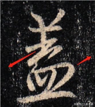 我们《圣教序》中这个“盖”字,上面部分的重心位置由于笔画的上扬往左下倾斜,下面的“皿”字底,王羲之通过字势的改变将重心右移,最终是这个字在整体上达到了一个平衡!