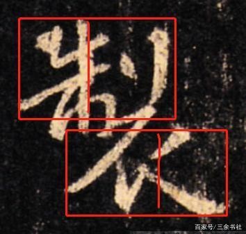 我们再来看这个“制”字,这个字相比于上面的“盖”字,错位的更加离谱,上下两部分的中线离得更远,而王羲之仅靠一笔的搭接将这个字上下部分联为整体,其造势之精巧,后世之人难以企及。