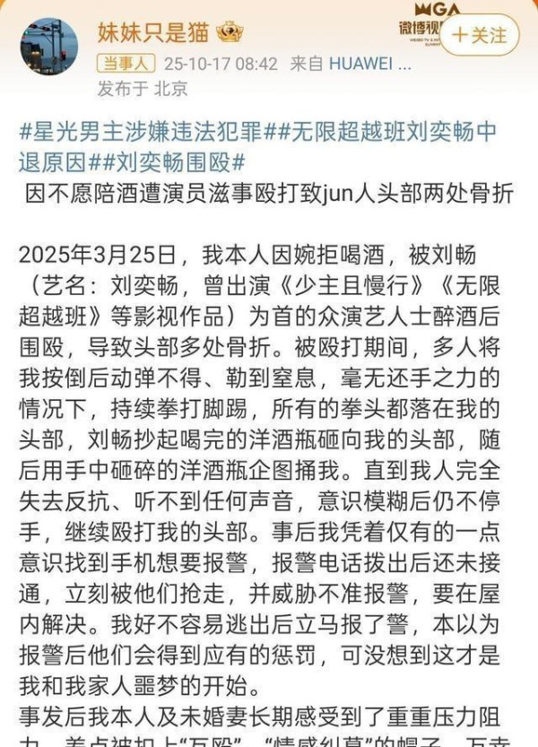 更让人寒心的是,事情发生这么久了,梁先生连个正式的道歉都没收到。这些人打完人之后,想的只是怎么脱身,根本没把受害者的感受当回事。更讽刺的是,案发之后,一些涉事的演员依然在社交平台上活跃,该发自拍发自拍,该接戏接戏,好像什么都没发生过一样。镜头前他们依然光鲜亮丽,演着各种正面角色,可镜头后呢?一个头骨被打骨折的受害者,还在为自己的遭遇愤愤不平。