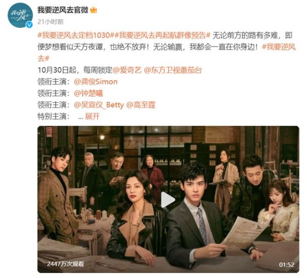 好在,东方卫视即将在明晚上线的这部大剧《我要逆风去》是妥妥的一盘大菜。