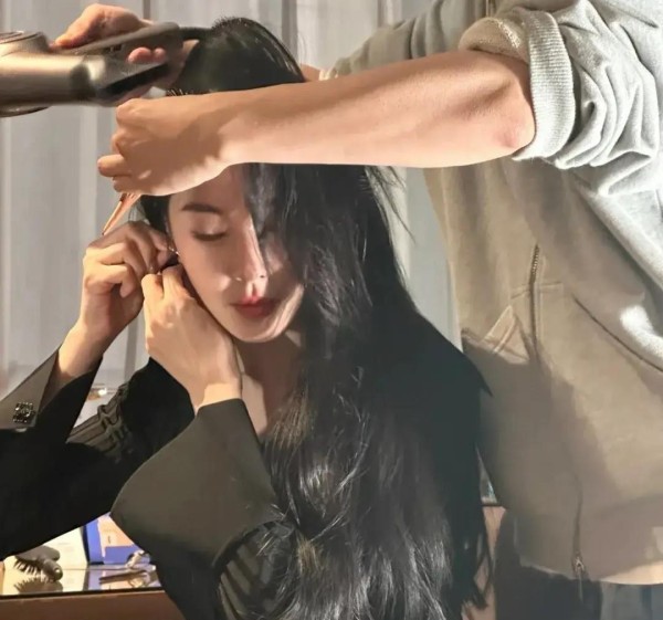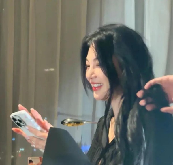 张雨绮在做发型,凌乱也美