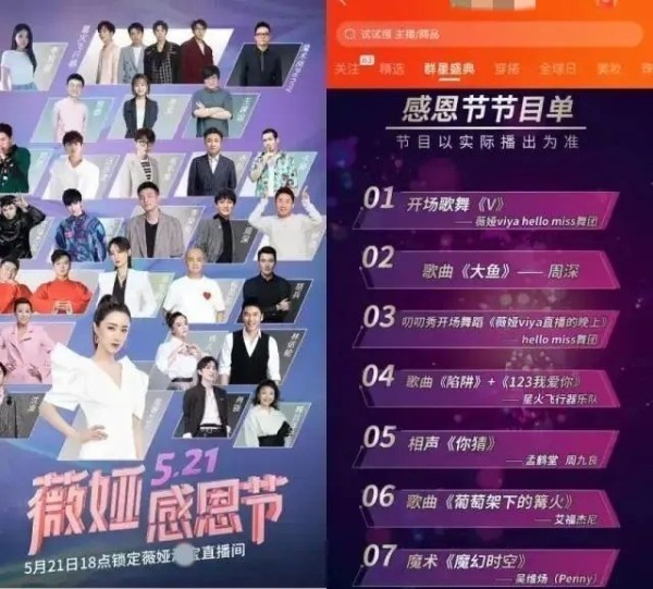 薇娅翻车后,521直播晚会邀请了50位明星,有你喜欢的明星吗?薇娅521感恩节直播明星阵容、直播时间、直播详情