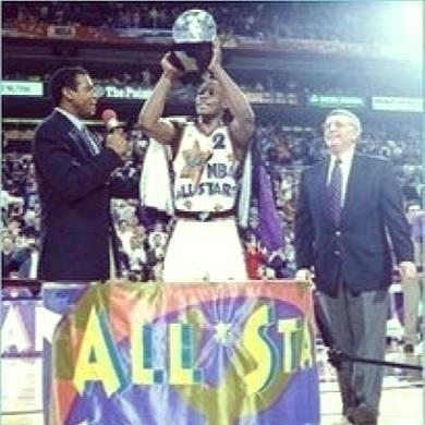 1996赛季的全明星赛,乔丹迎来了他职业生涯中的第十次亮相。历经十年的磨砺,乔丹在全明星赛场上的表现欲望虽有所减退,但他的技艺依然无人能敌。即便未尽全力,他依然以超凡的技艺统治了比赛。整场赛事中,乔丹11次出手便有9次命中,命中率高达近九成,轻松斩获20分。东部队伍的胜利,让乔丹顺利摘得全明星MVP的桂冠,这也是他职业生涯中第二座全明星赛MVP奖杯。