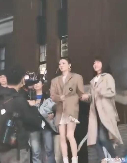 另一边陈都灵在工作人员的帮助下整理衣服,路人镜头下的她真的是太瘦了。