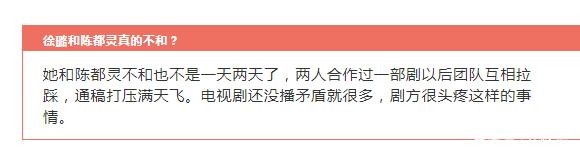 此前,有传言称徐璐和陈都灵不和,两个人的团队互相拉踩,统稿打压满天飞,惹得剧方十分头疼。