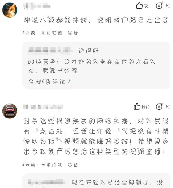 最主要的是,这些主播有时候谎话张口就来,已经失去了网友们的信任。有不少网友评论称,真是一股子歪风邪气,靠着胡说八道,拍个视频就能赚好多钱,只会让年轻一代人拒绝奋斗,没有几个肯踏踏实实工作的,认为需要把这些主播封杀掉。