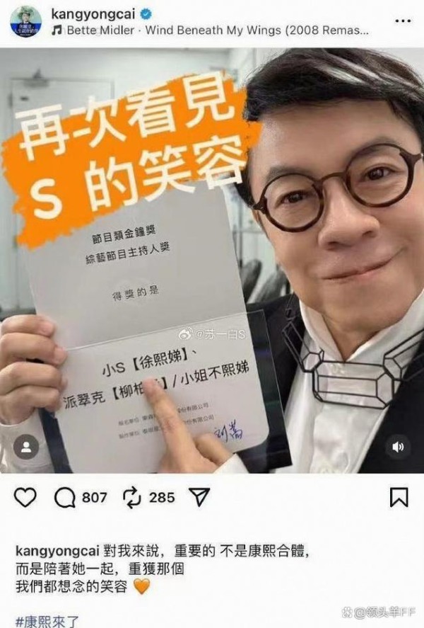 再说个八卦,听说小S复出可能要等到明年(其实也不远了),跨年后她应该就会回来。她家那边,妈妈和姐夫具俊晔都出来祝贺,说她和蔡康永其实最适合“复合”。但也有个小插曲——有评论区老粉居然开玩笑说,还得看康永哥愿不愿意。哈哈哈,合着还得他点头,S姐才能再出山?