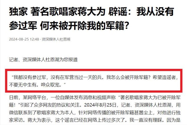 蒋大为否认被开除军籍,称无中生有!与“大衣哥”过往恩怨曝光!