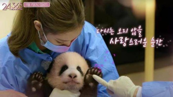 韩国艺人搂抱大熊猫幼崽
